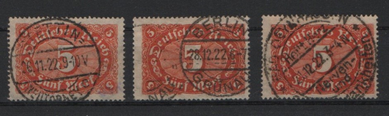 DR, Infla, 1922, Mi.- Nr.: 194 a, b + c, gestempelt, b + c tiefstgeprüft Infla Berlin WE! Selten!