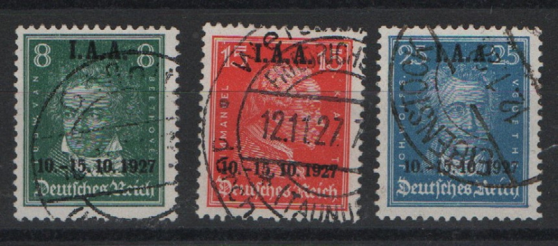 DR / Weimar, 1927, Mi.- Nrn.: 407- 409, gestempelt, kpl. Satz! Selten! Qualitätssatz!