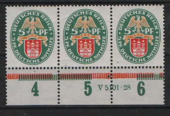 DR / Weimar, 1928, Mi.- Nr.: 425 Y (3x) + + Ur. mit HAN, **, Wappenausgabe! Selten!