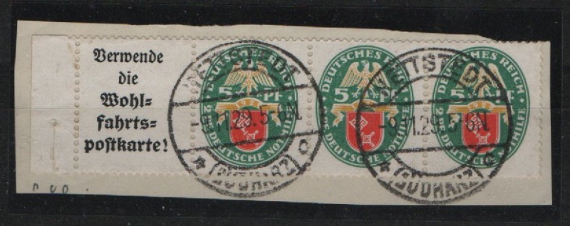 DR / Weimar, 1929, Zusammendrucke, Mi.- Nr.: W 34 + Anhang, Auf kl. Briefstück, gestempelt! Selten!
