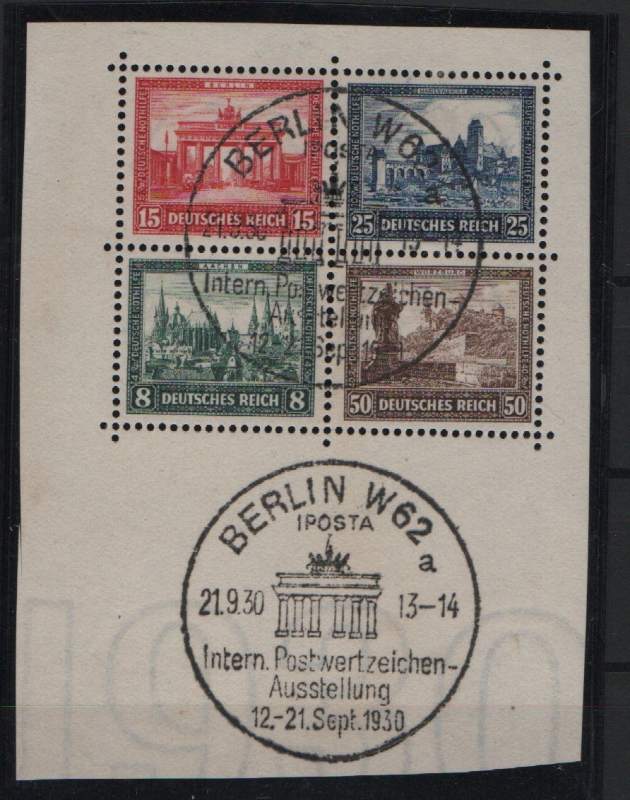 DR, Weimar, 1930, Mi.- Nr.: gr. Herstück Bl. 1, gestempelt, Befund Schlegel BPP; " e+e"! Selten!