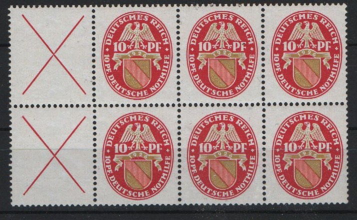 DR, Weimar, 1931, Zusammendruck, Mi.- Nr.: W 24.1 Y (2x + je 2 anhängende Marken), **, Befund Schlegel BPP; e + e! Qualitätsstück! Sehr selten!