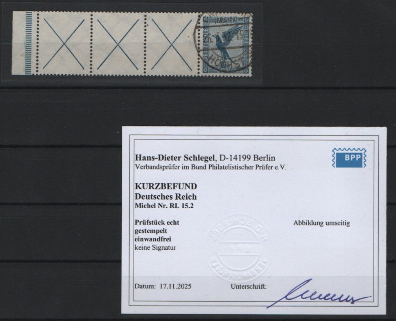 DR / Weimar, 1932, Zusammendrucke, Mi.- Nr.: RL 15.2, gestempelt! K.- Befund Schlegel BPP: e+e! Luxusstück! Selten!