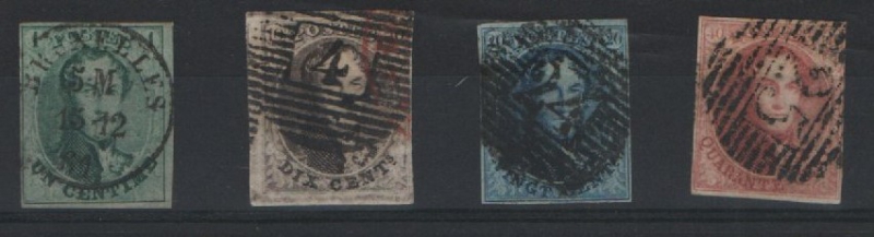 Belgien, Mi.- Nrn.: 6- 9 II, gestempelt, in guter Bedarfsqualität, selten!