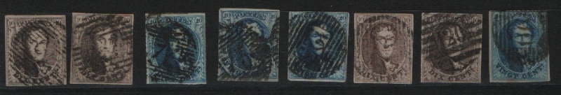 Belgien, ca. 1855, kl. Lot mit besseren / frühen Marken, leicht unterschiedliche Erhaltung