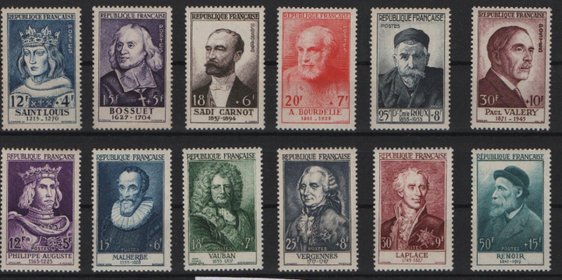 Frankreich, 1954 / 55, Mi.- Nrn.: 1015- 20 + 1053- 58, Persönlichkeiten! Je komplett **!
