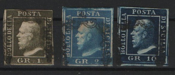 Italienische Staaten, Sizilien, Mi.- Nrn.: 2, 3 + 5, gestempelt, Mi.- Nr.: 5 signiert! Kabinett- Luxuserhaltung! Selten!