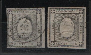 Sardinien, Mi.- Nrn.: 1 + 2, gestempelt, selten! Gute Bedarfserhaltung!
