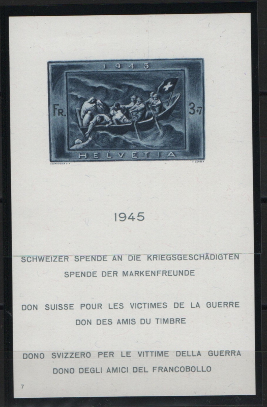 Schweiz, 1945, Mi.- Nr.: Bl. 11, **, Foto- Befund Renggli: e+e! Qualitätsstück! Selten!