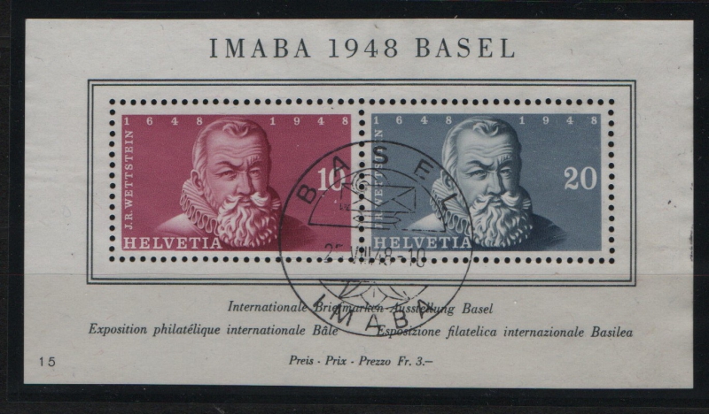 Schweiz, 1948, Mi.- Nr.: Bl. 13, gestempelt! Selten!