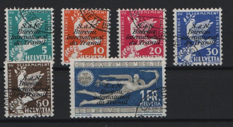 Schweiz, Organisationen: SDN, Mi.- Nrn.: 36- 41, gestempelt, selten!